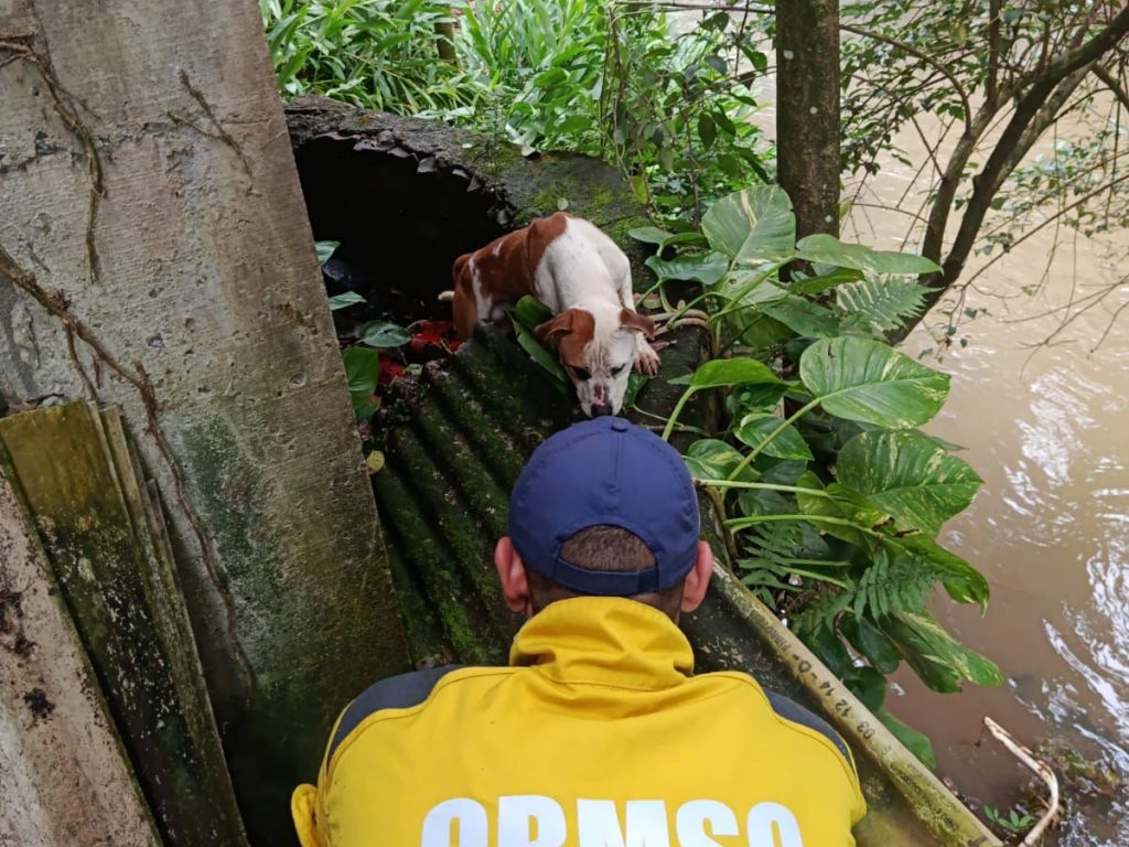 Um cachorro da raça pitbull foi resgatado pelo Corpo de Bombeiros Militar de Seara após ficar ilhado às margens do rio na Avenida Beira Rio. A ocorrência foi registrada nesta segunda-feira (17), por volta das 14h, quando a guarnição do ABTR-107 foi acionada pelo COBOM para atender à situação de animal preso em local de difícil acesso.