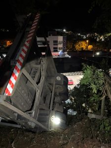 Após o atendimento, o local foi isolado com fita zebrada, inclusive na rua superior por onde o caminhão caiu. A ocorrência contou com o apoio da Polícia Militar e da Celesc, que atuaram na segurança da área e no restabelecimento da energia elétrica.