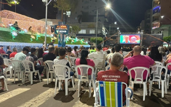 Foi realizado neste domingo (7) o Cinema na Praça, em frente ao prédio da Prefeitura de Seara, como parte da programação Sonho de Natal. A exibição do filme Caramelo em um telão montado especialmente para a noite emocionou crianças e adultos com a história de amizade, superação e afeto entre Pedro e o vira-lata Amendoim, prendendo a atenção do público do início ao fim.