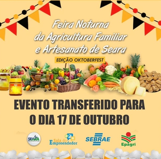 A 10ª edição da Feira Noturna da Agricultura Familiar e Artesanato de Seara já tem data marcada: será no dia 17 de outubro, em clima de Oktoberfest. O evento vai reunir expositores locais, oferecendo produtos coloniais, artesanais e gastronômicos, além de atrações culturais típicas da tradicional festa alemã.