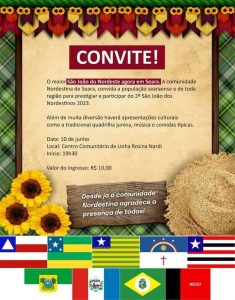 A Comunidade Nordestina de Seara convida a população para prestigiar e participar do 2º São João dos Nordestinos 2023.