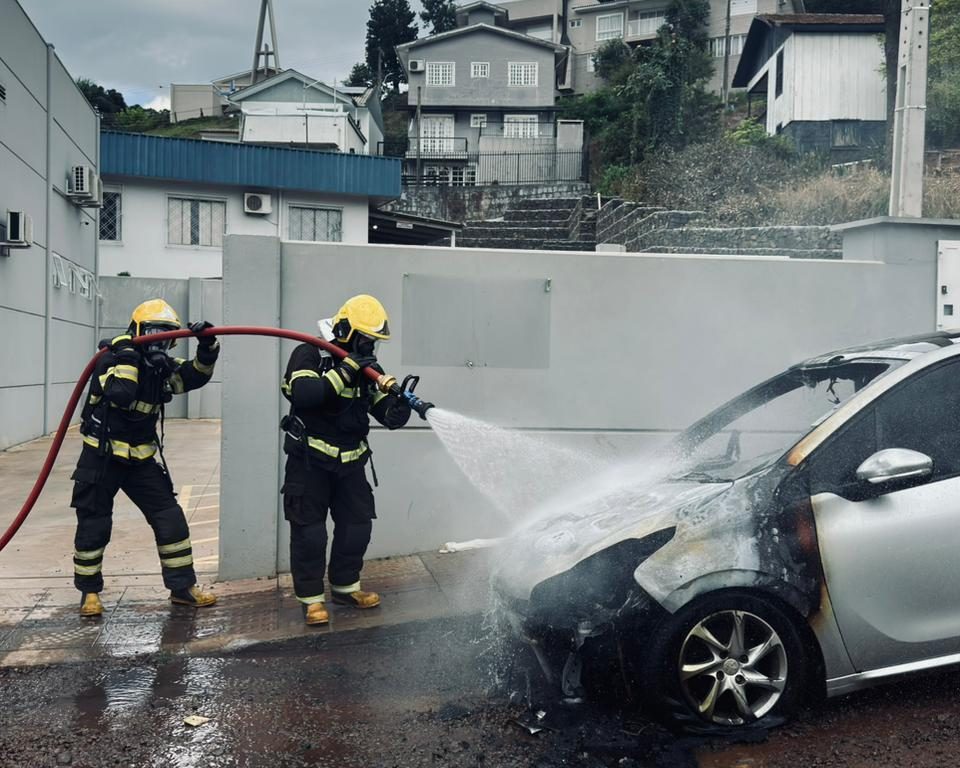 Um incêndio em veículo mobilizou o Corpo de Bombeiros Militar no início da tarde desta quinta-feira (16), no Centro de Seara.